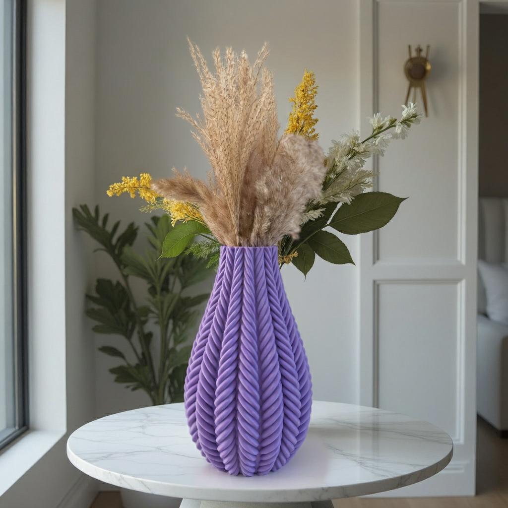Braided Form Vase – 3D Printed Textured Decorative Vase for Modern Home Styling