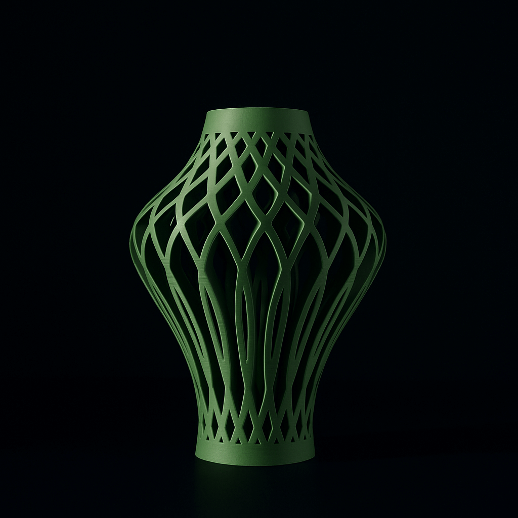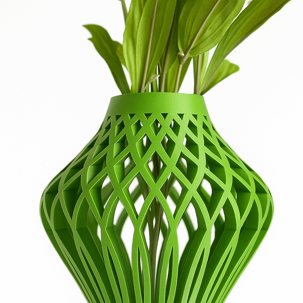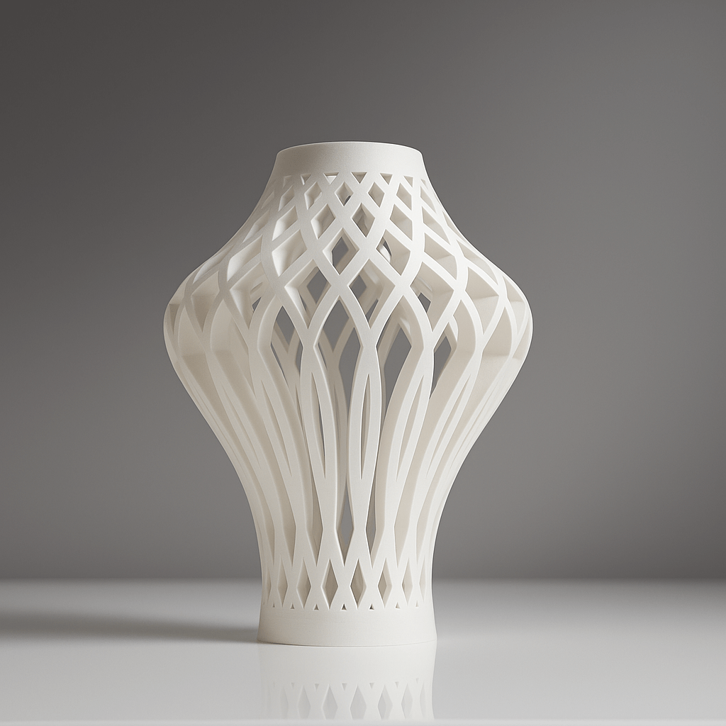 3D-printed from eco-friendly PLA, this vase’s openwork lattice design creates visual interest and airy elegance.