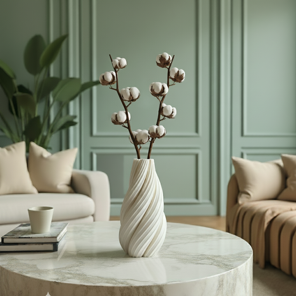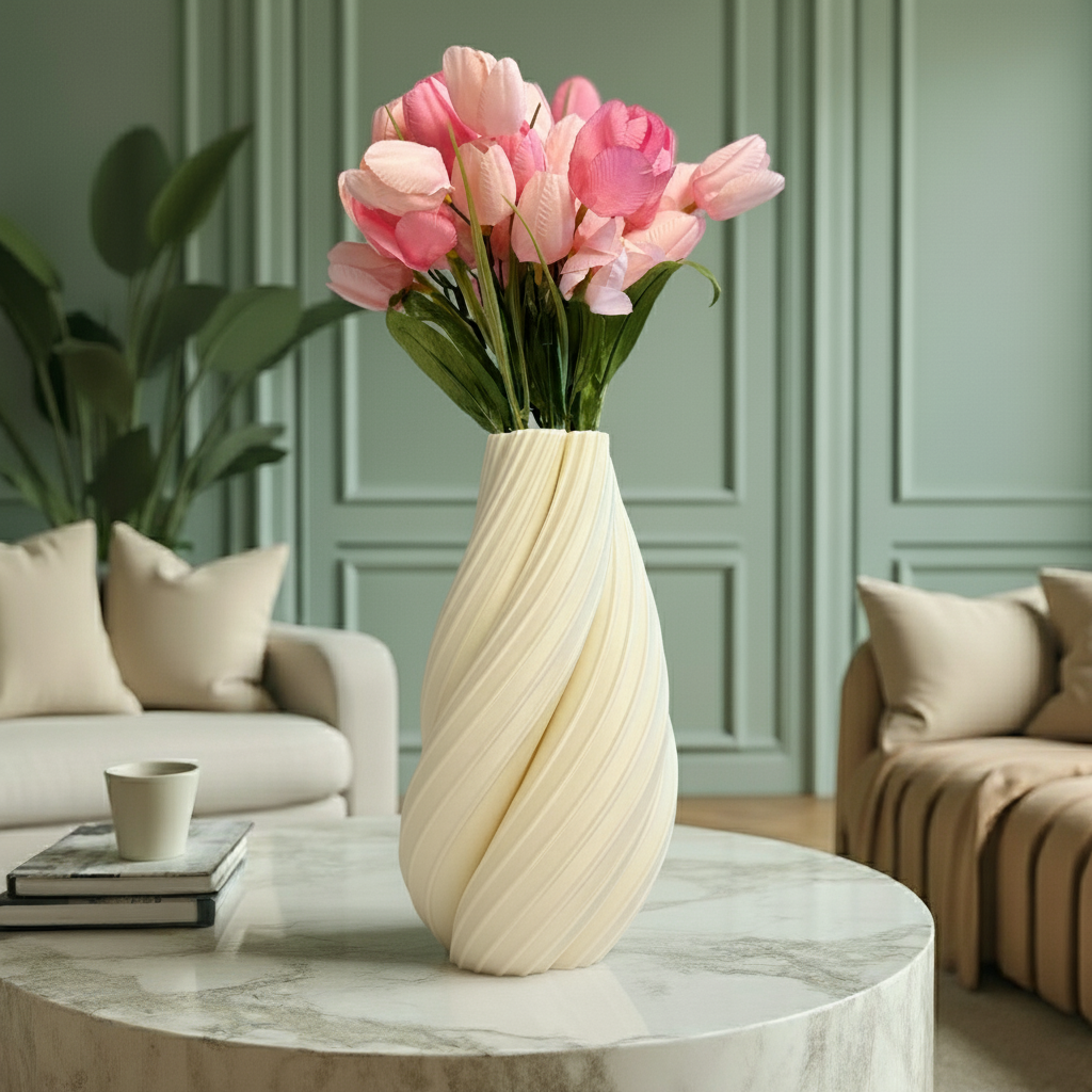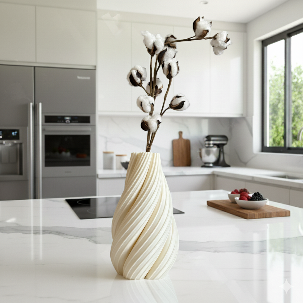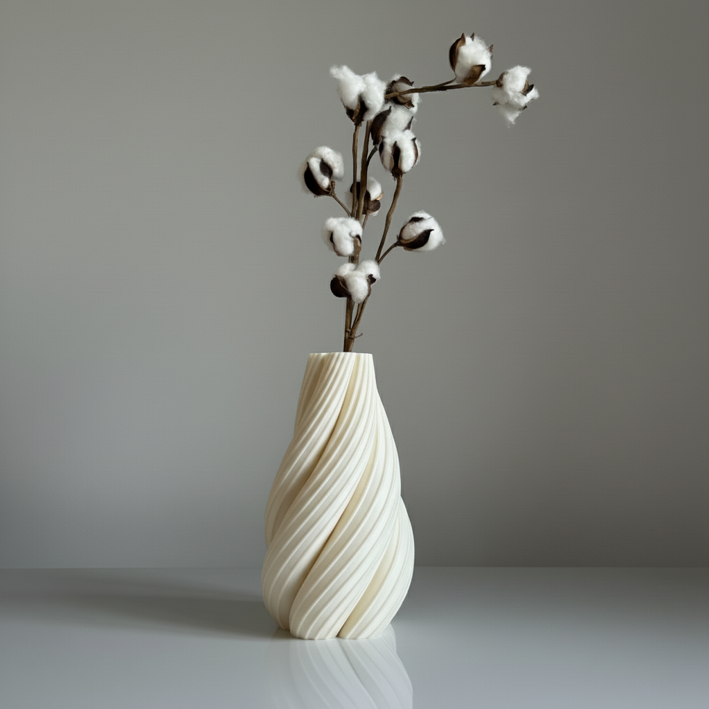 The Drift Twist Vase brings graceful movement to modern spaces. With its flowing spiral ridges and balanced proportions, this 3D-printed vase feels as soothing as it looks.