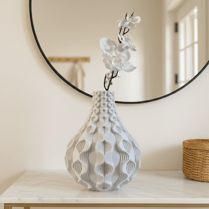 3D-printed using eco-friendly, plant-based PLA, the vase combines sustainability with design sophistication.